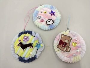 はち底ネットと余った毛糸で作るキーホルダーなのですが